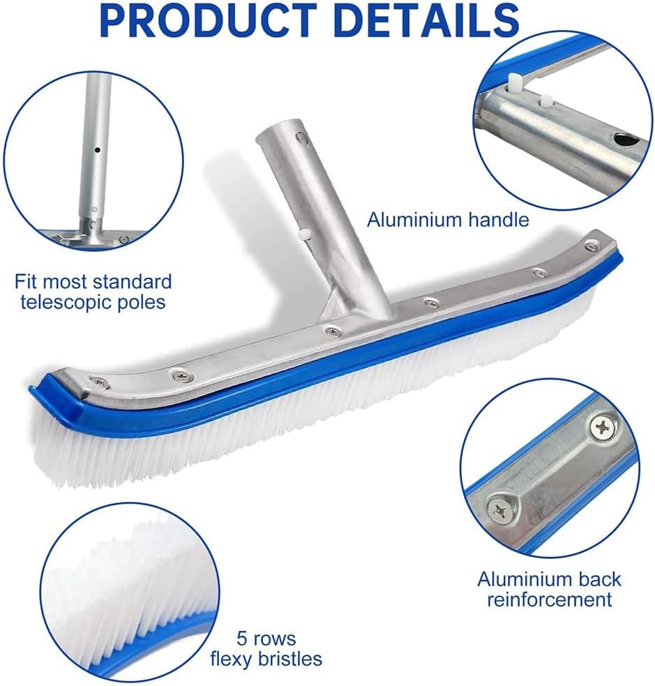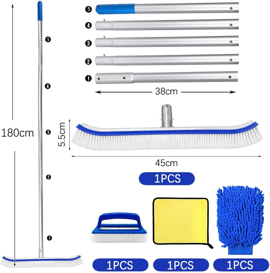 Cepillo Piscina con pertiga 180cm,Cepillo para Limpiar Piscinas 45cm,Cepillo para Limpiar Piscinas,con Barra de Aluminio Ajustable y Parte Trasera de Aluminio Reforzado para Paredes, Azulejos