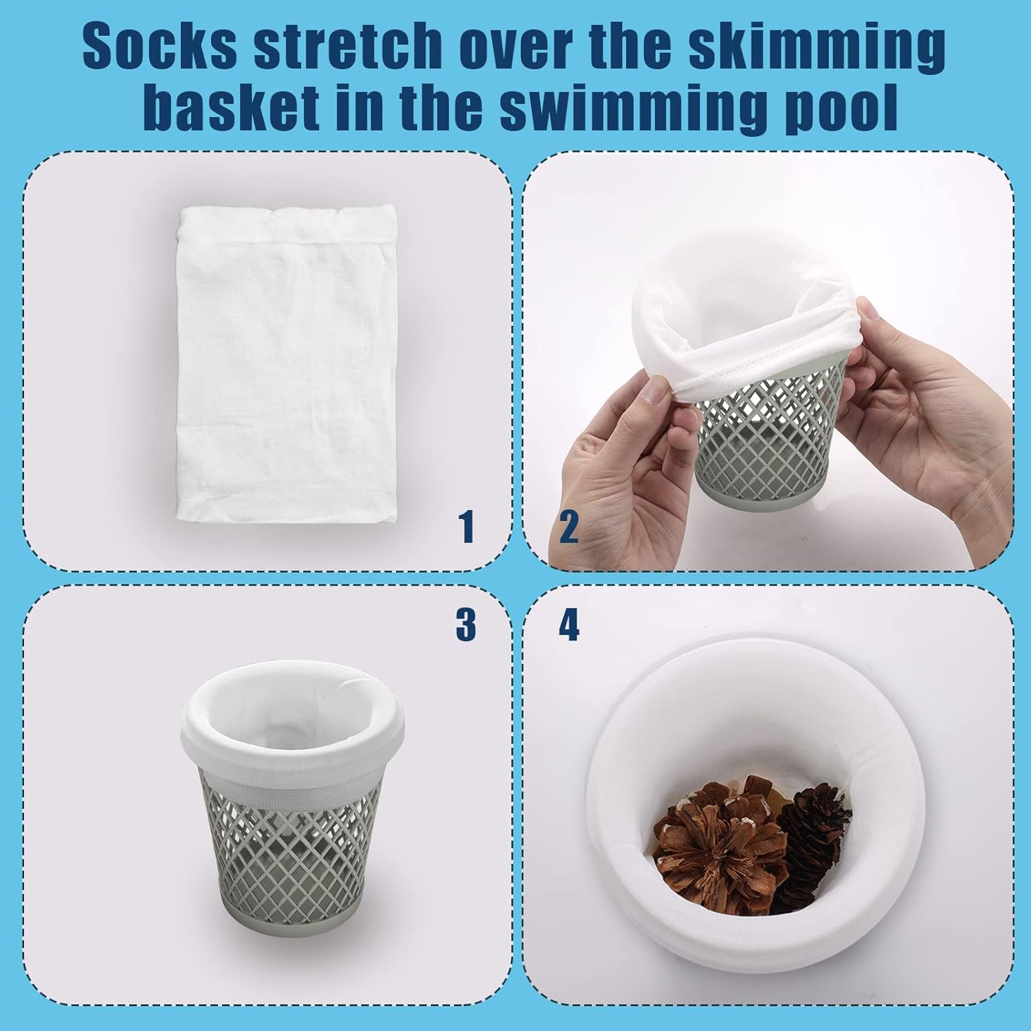 SAVITA 50 Piezas de Calcetines de Filtro para Skimmer de Piscina, Calcetines de Skimmer Blancos Calcetines Skimmer para Piscina Hojas Impurezas Arena Fina Desechos y Otros Artículos Diversos