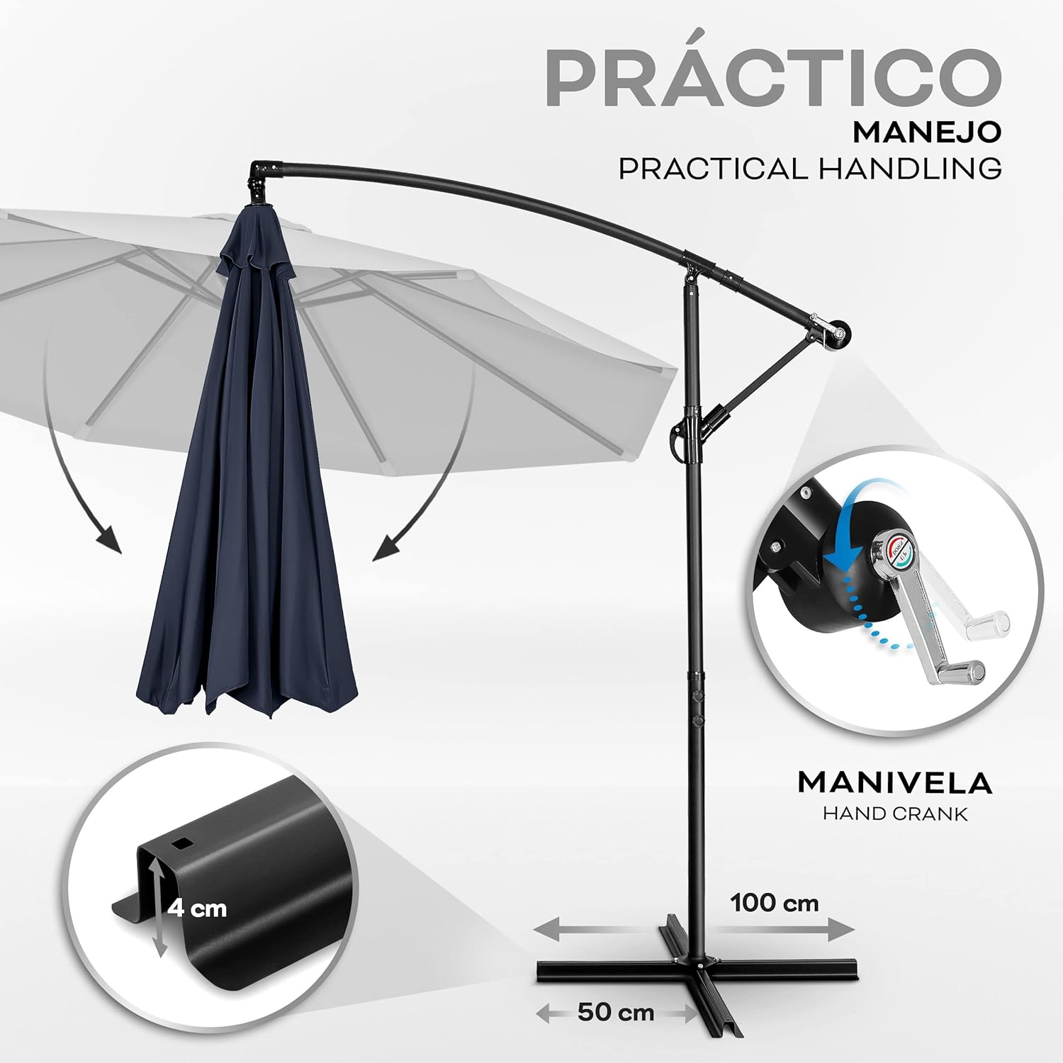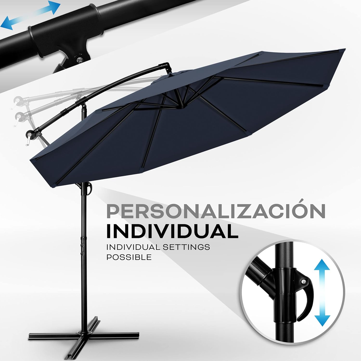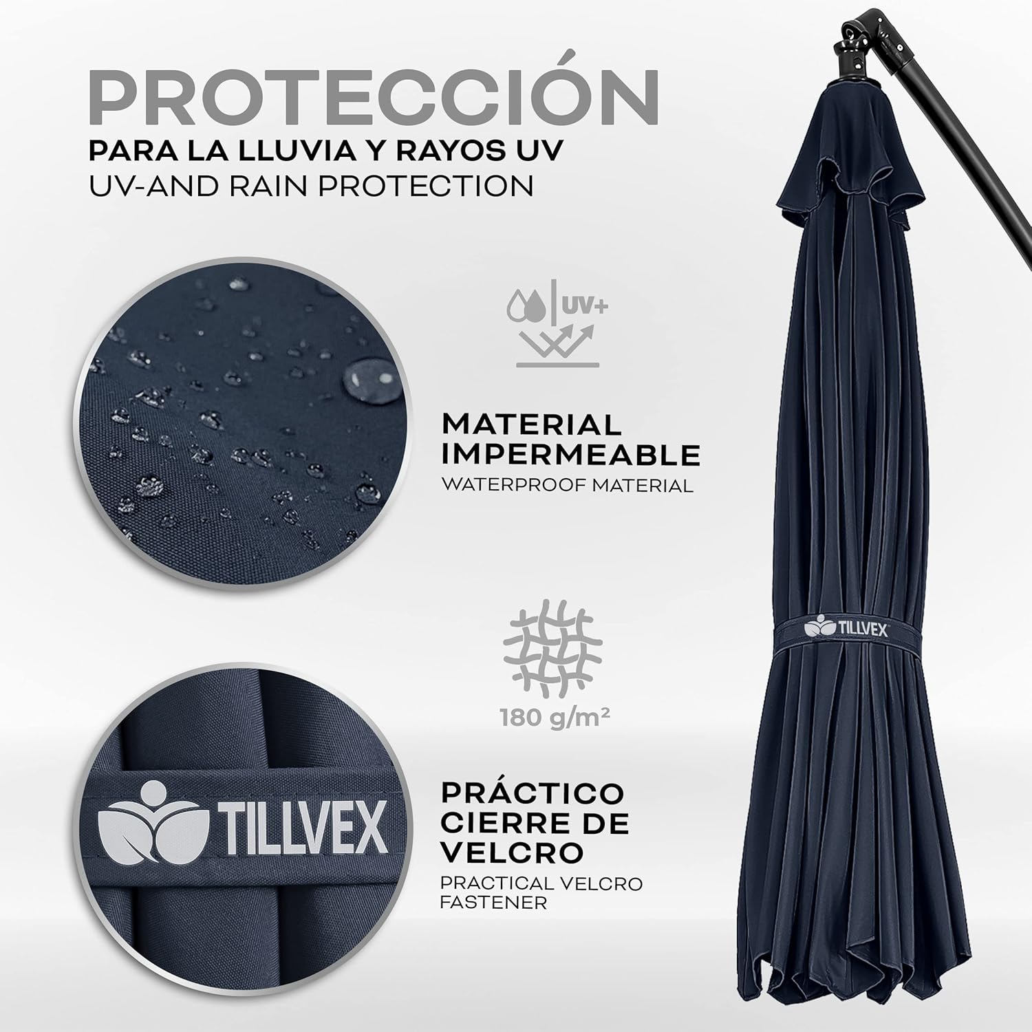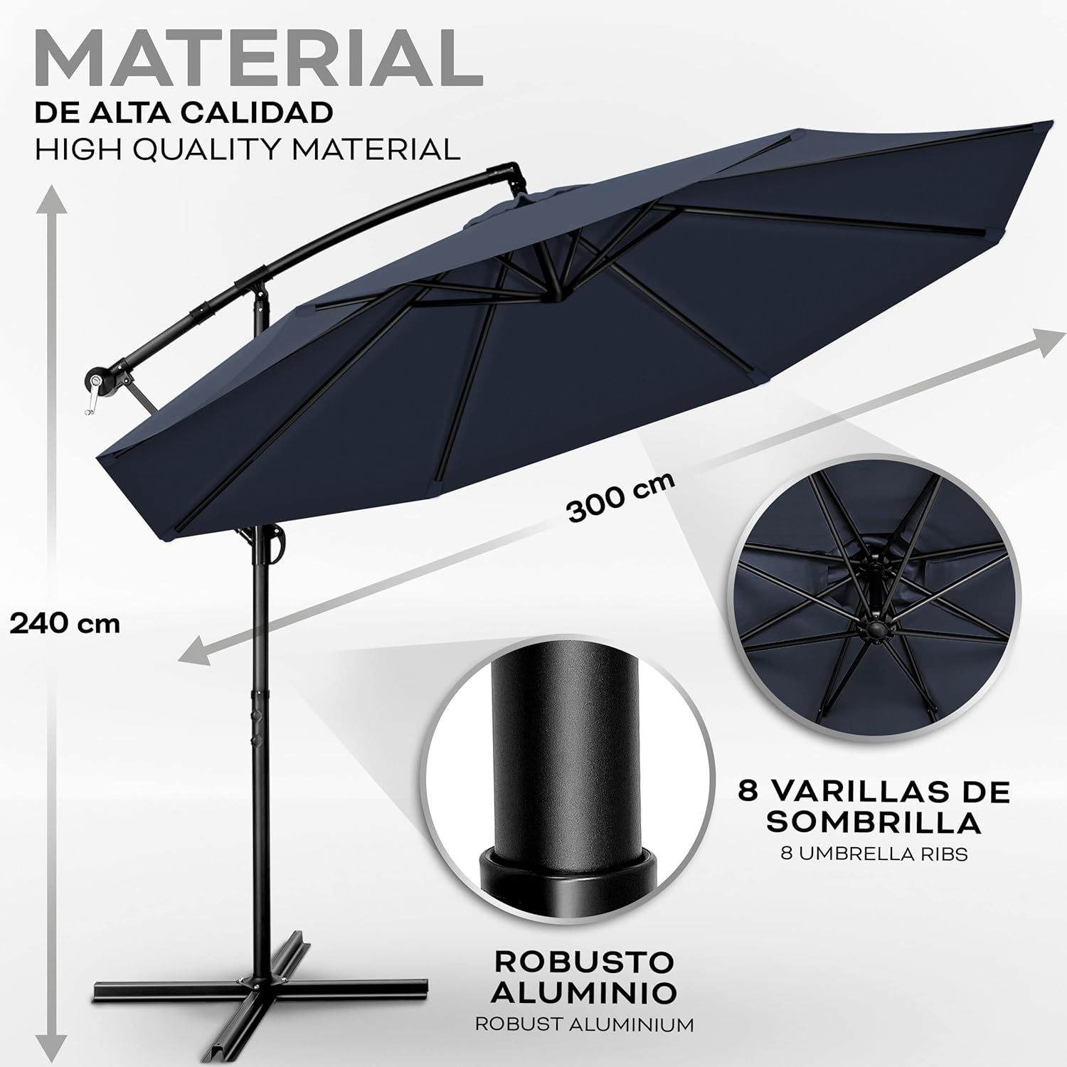 - Material: mástil de sombrilla de aluminio, tejido de poliéster de 180 g/m².