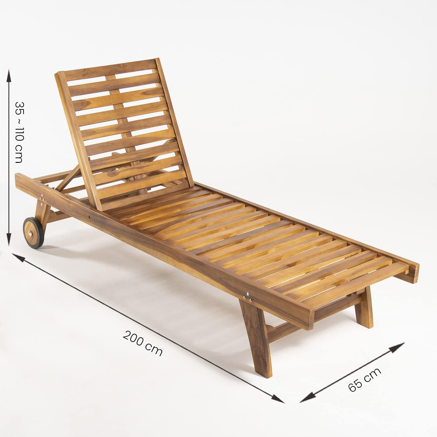 Home » Shop » Tumbona para jardín con Ruedas, Reclinable, Madera Teca Grado A, Medidas 65x200x35 cm, Tratamiento al Agua aplicado, Hamacas de Piscina, Tumbona de jardín de teka